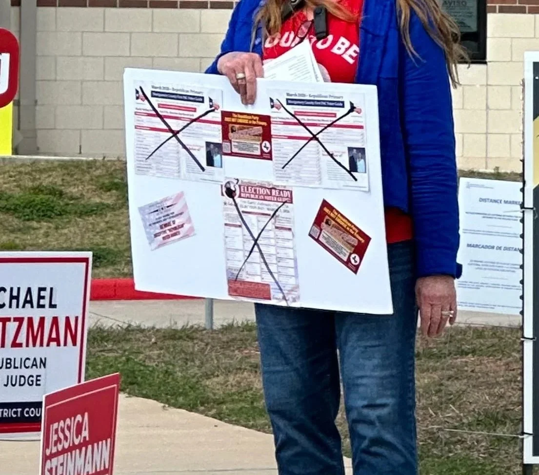 But the misinformation didn’t stop there. This small faction took the "RVTX has been CENSURED by the Montgomery County Republican Party" narrative and ran with it, even spending money to print signs and place them at polling locations.